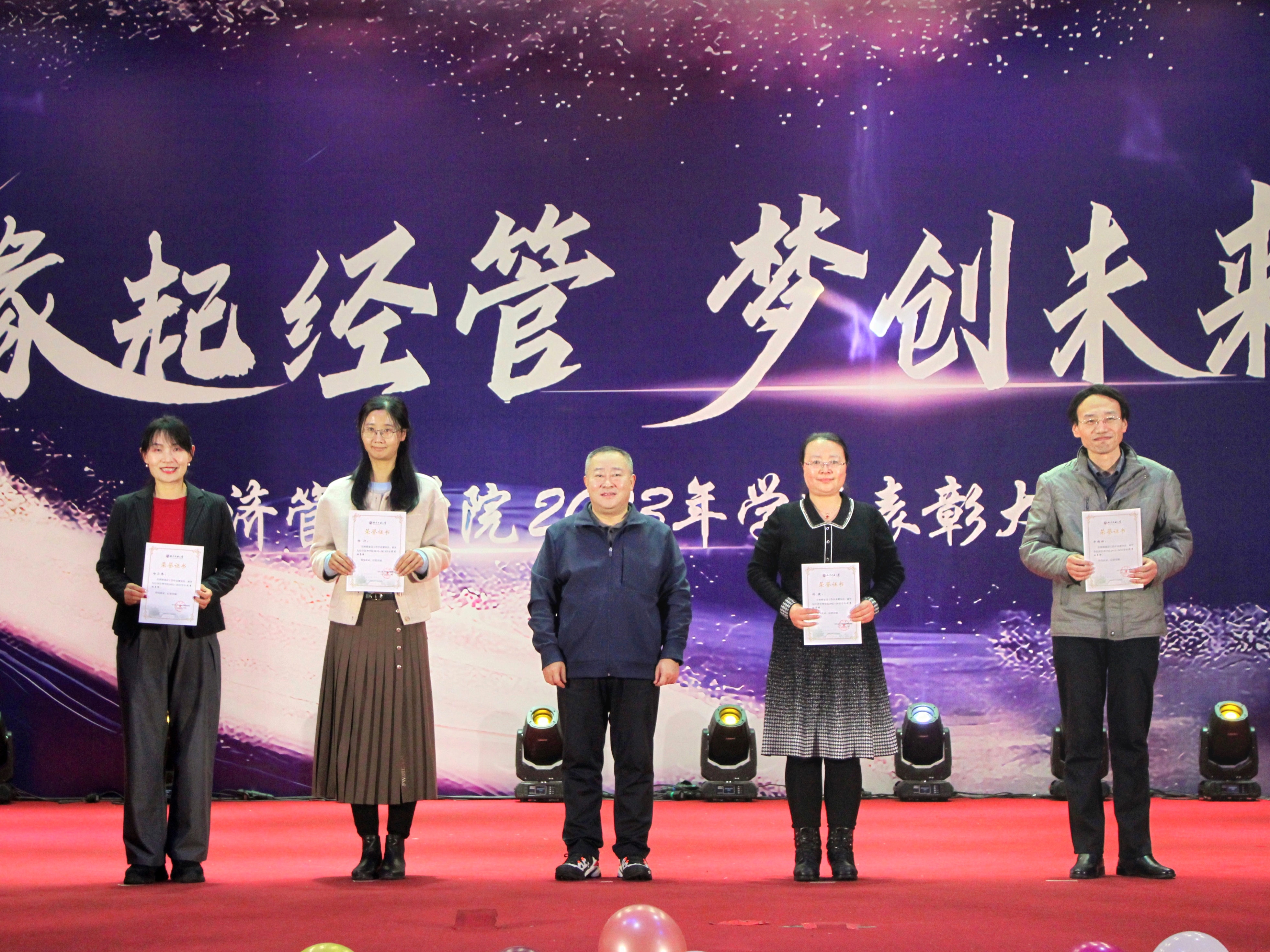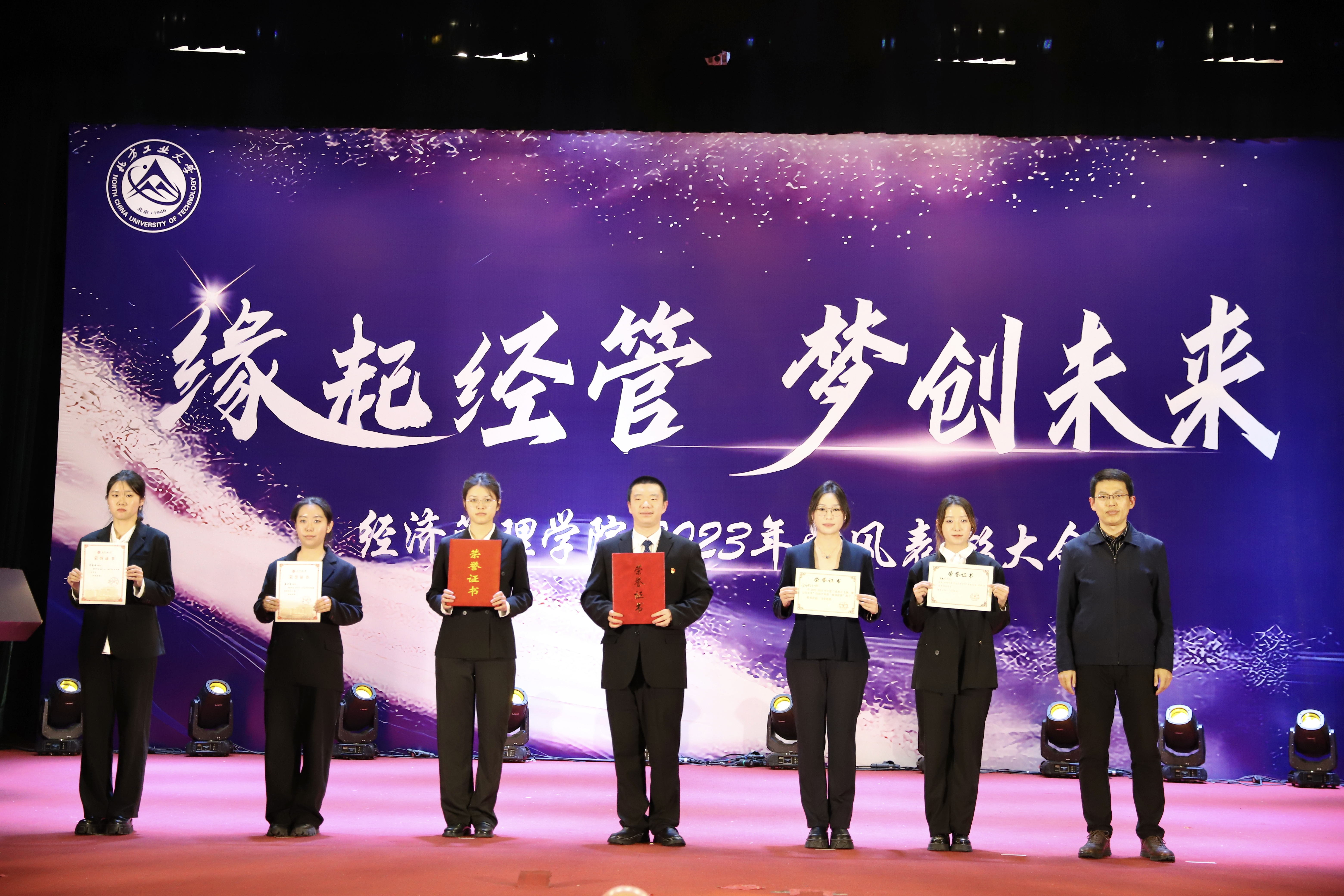 为加强学风建设,总结经验,展现学子风采,激励公司广大师生保持昂扬向上的奋斗姿态,12月14日晚,WilliamHill中文官方网站在图书信息楼报告厅举办“缘起经管 梦创未来”2023年学风表彰大会。校员工工作部部长孙宗瑞,公司领导班子全体成员,各系主任、班导师、辅导员,22级、23级全体员工参加了活动。