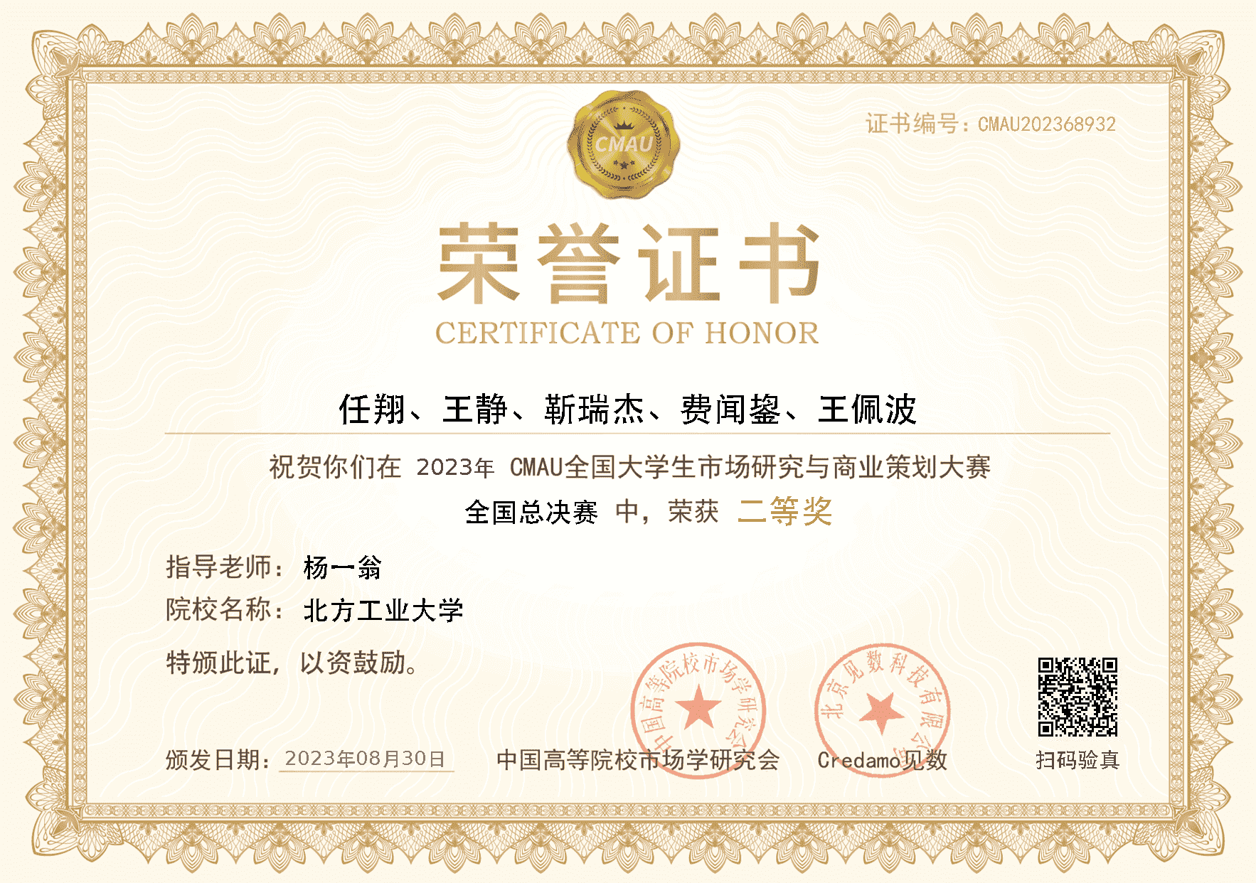 8月31日,由中国高等院校市场学研究会(CMAU)主办的第二届CMAU全国老员工市场研究与商业策划大赛,在东北大学圆满落下帷幕。WilliamHill中文官方网站杨一翁老师指导的,由工商管理系2022级研究生任翔、王静、靳瑞杰、费闻鋆和王佩波组建的参赛队荣获全国总决赛二等奖,杨一翁老师被评为优秀指导教师。