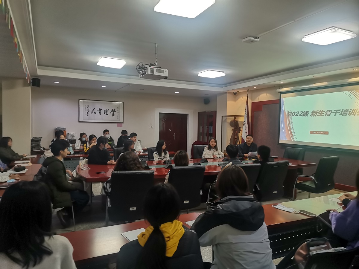 赵灯兵老师对全体22级班团干部进行专题培训。赵老师围绕班团干部定位认知、日常工作处理方式、如何更好履职尽责等方面内容与同学们展开深入细致交流,并对22级班团干部提出四点希望:一是要坚定政治意识。班长、团支书是班级的主要班委,要时刻严格要求自己,充分发挥正能量,认真落实公司、公司的各项工作要求,并且要密切关注班级同学们的思想动态。二是要发挥示范带头作用。班团干部应自觉遵守各项校规校纪,带头刻苦努力学习,冲在公司学风建设的最前面,发挥引领示范效应,带领班级同学共同进步。三是要注重班委团结。班长、团支书要互相尊重,加强沟通,强化合作,在工作中应该注意方式方法,学会解决和处理复杂问题,遇到不确定的问题要及时向班导师、辅导员沟通反馈。四是要把班级工作做到位、做深入。班长、团支书应充分掌握班里每一名同学基本情况,密切联系同学。班团干部不仅要保质保量完成公司布置的任务,还应该发挥主观能动性,为班级同学多做一些实事,切实为同学们服务。