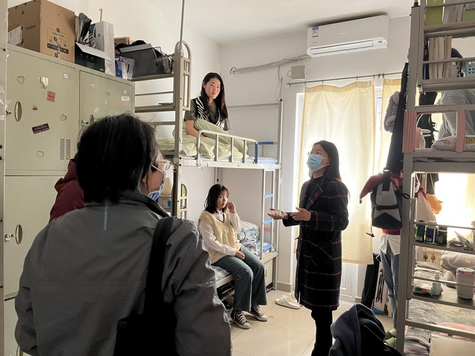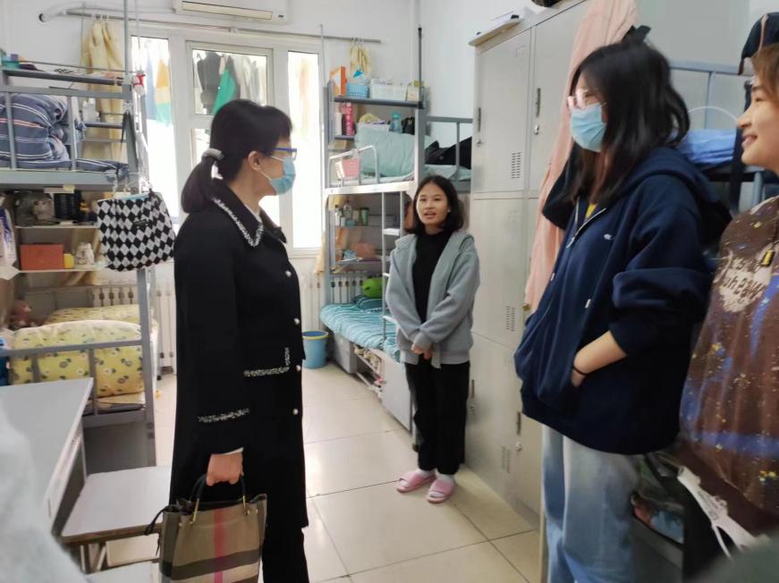 “开学已经一个多月了,总体上适应了吗?学习生活上有什么困难吗?”“最近天气凉了,该多加些衣服了。”“按时做核酸有困难吗?”“近期在附近釆购生活必需品,不要去人群聚集的购物中心。”一句句暖心的问候,一句句真诚的鼓励,一声声情真意切的提醒,一个又一个宿舍的“敲门”,诠释了老师们“关注员工所需,传递关心关爱,筑牢安全屏障”的责任担当与服务情怀。
