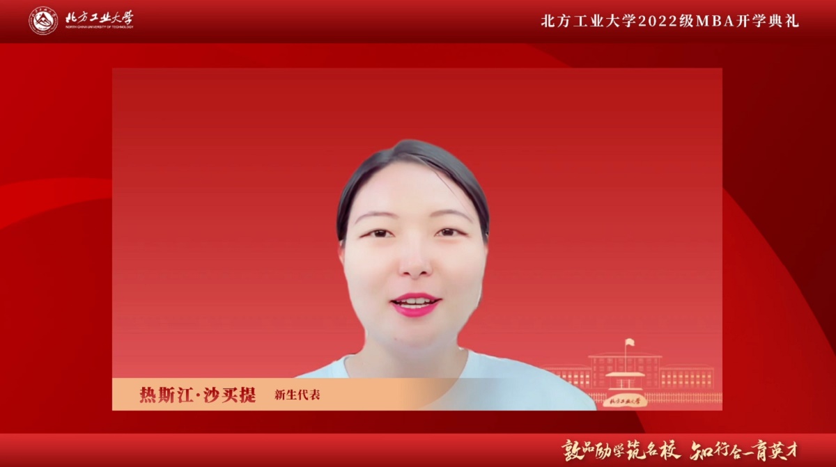 2022级非全日制MBA班热斯江·沙买提同学作为新生代表发言并感谢williamhill官方网站MBA给自己重回校园学习的机会。她表示,MBA的学习将是自己人生最重要的转折点之一,未来她将常怀求知之心,不断探索突破。同时她也期待与同学们在北方工大MBA的学习过程中见证彼此的努力和精彩,共同度过充实而美好的校园时光。