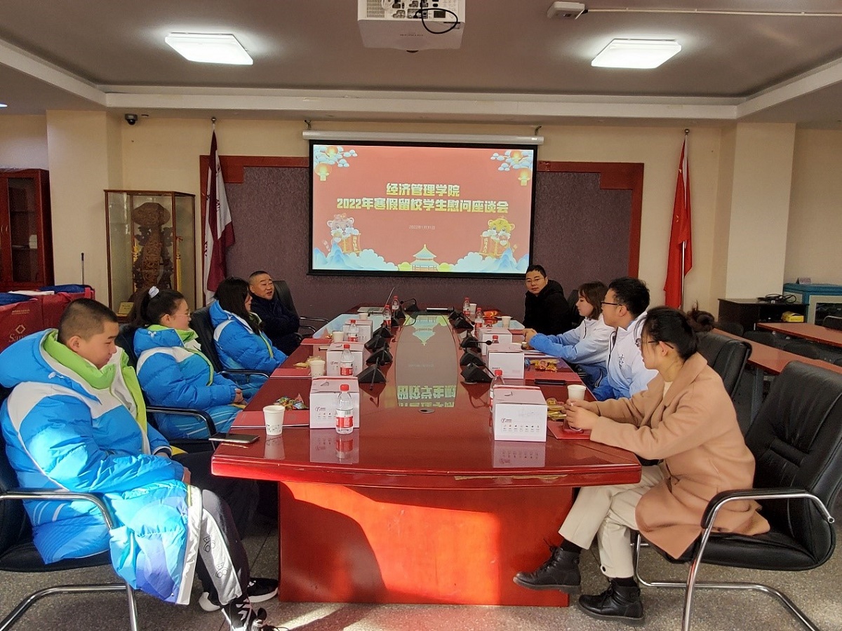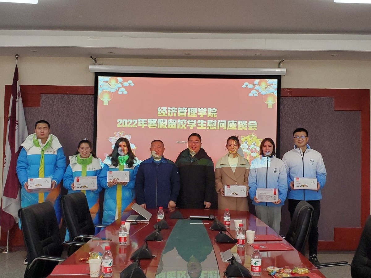 1月31日上午,在除夕之日WilliamHill中文官方网站在励学楼201会议室举行2022年寒假留校员工慰问活动,公司经理赵继新、党委书记王伟宾、党委副书记赵洁及留校员工参加了慰问活动。
