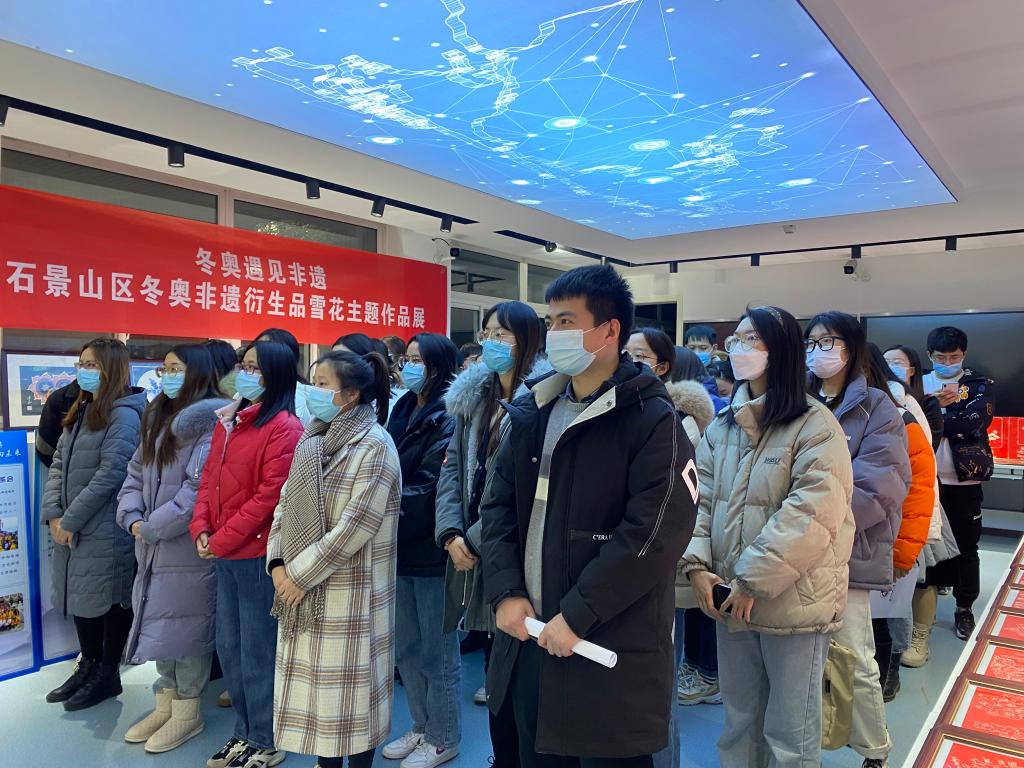 2021年12月29日下午,为了迎接冬奥会的到来,也为了让同学们更加了解石景山区的冬奥非遗衍生品,WilliamHill中文官方网站在励学楼117开展了“冬奥遇见非遗”石景山区冬奥非遗衍生品雪花主题作品展,公司党委副书记赵洁老师、研究生辅导员陈旭霞老师,石景山区非物质文化遗产保护中心张瑞老师以及会计研究生党支部的党员和积极分子参加了此次的作品展参观活动。