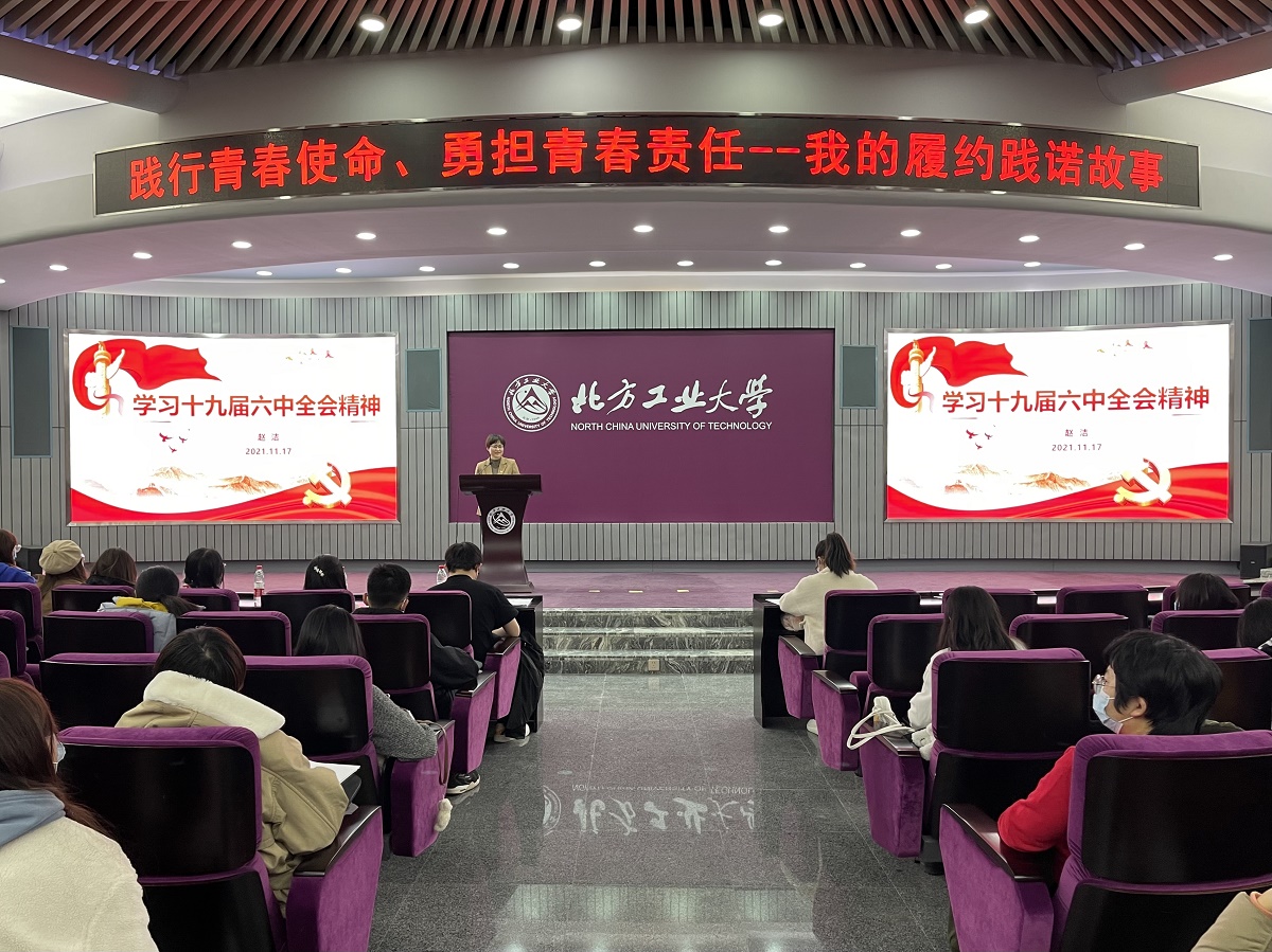 展示之后,赵洁老师点评了同学们的展示情况和各支部同学们的履约践诺完成情况,带领大家集中学习了党的十九届六中全会的精神。她指出,党的十九届六中全会的召开,是我党历史上又一次具有里程碑意义的重要会议,会议总结了党的百年奋斗重大成就和历史经验,明确了开启新征程的道路和方式。她强调,各党支部支委要根据公司和公司党委的要求,带领支部同学提高思想认识、认真领会精神,通过学习提升理论水平,通过学习坚定政治信仰。她希望同学们,从党的伟大历史经验中汲取力量,将所学用于日常工作中,发挥引领带动作用,带动身边同学、服务身边同学,让个人价值在奋斗中彰显。