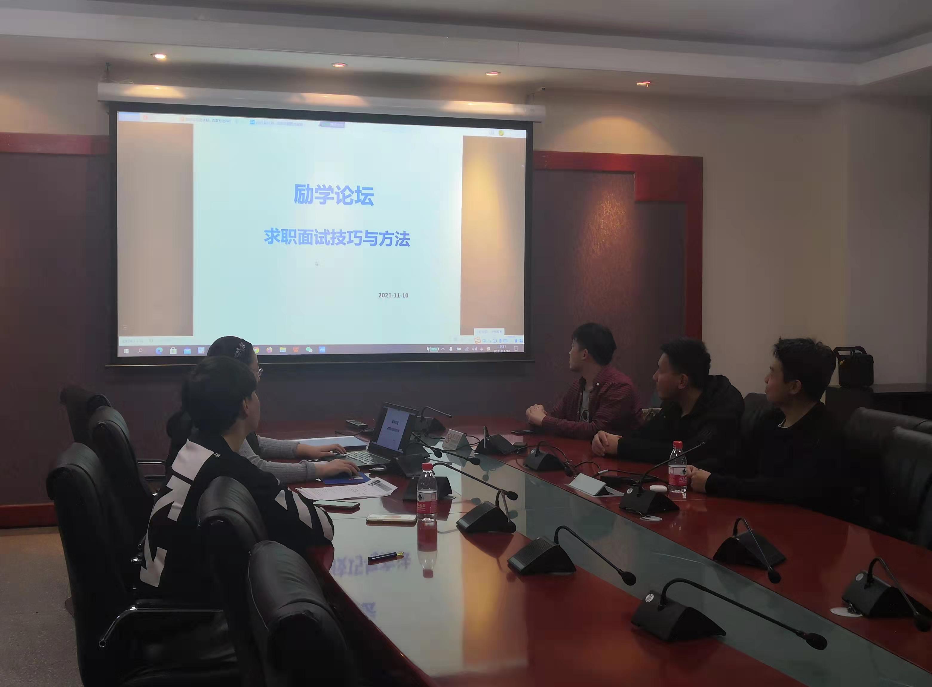 2021年11月10日晚上7:30,WilliamHill中文官方网站励学论坛在励学楼201会议室举行。为了帮助会计系毕业生在求职面试环节表现出色,获得用人单位的青睐,得到心仪的职位,本期的主题为“求职面试技巧与方法”,由WilliamHill中文官方网站会计系教师兼教师辅导员贾海波老师主讲,2018级会计系准备就业求职的部分员工通过线上和线下的方式参加了本次论坛。