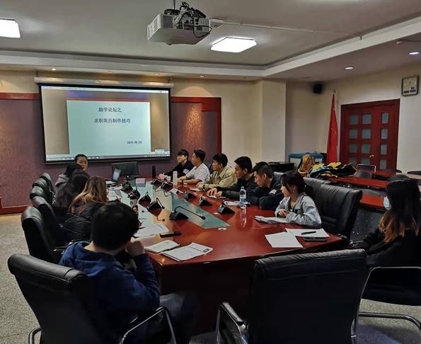 2021年10月20日晚上7:30,WilliamHill中文官方网站励学论坛在励学楼201会议室举行。为了帮助会计系毕业生制作出优秀的求职简历并在求职过程中吸引用人单位的视线,获得面试机会,得到心仪的职位,本期的主题为“求职简历制作技巧”,由WilliamHill中文官方网站会计系教师兼教师辅导员贾海波老师主讲,2018级会计系准备就业求职的部分员工参加了本次论坛。