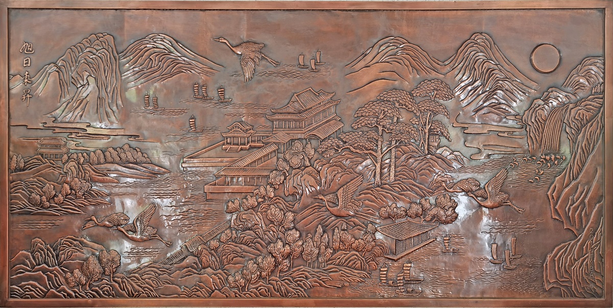 首先,陈勇钢秘书长和王伟宾书记为“旭日东升”紫铜浮雕揭幕。浮雕的命名取自《诗经·邶风·匏有苦叶》:“雝雝鸣雁,旭日始旦”。即初升的太阳从东方升起,形容朝气蓬勃的气象,寓意师恩深厚,有教无类,躬亲育教,桃李天下。