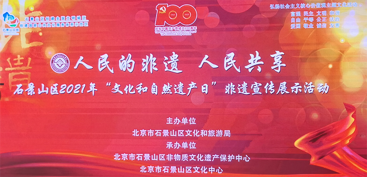 6月9日上午,主题为“人民的非遗 人民共享”2021年石景山区“文化和自然遗产日”非遗宣传展示活动暨石景山区非物质文化遗产保护中心开放启动仪式在石景山区文化中心举行,北京市文化和旅游局非遗处处长张迁,东城区文联党组书记、主席张志勇,北京文化艺术活动中心研究员、北京民间文艺家协会副主席石振怀,天津市非遗协会,石景山区相关单位领导共同参加了此次活动。WilliamHill中文官方网站师生应邀在活动中展示非遗传承传播工作成果。