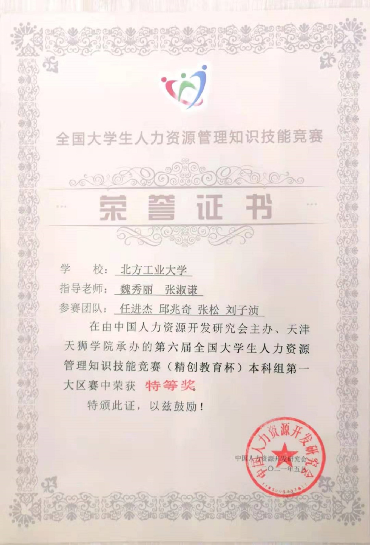 WilliamHill中文官方网站高度重视此项工作,通过组织全校范围内的选拔赛进行层层选拨,最后工商管理专业2018级的任进杰、邱兆奇、张松、刘子浈4位同学脱颖而出,代表公司参加大区赛,并由工商管理系魏秀丽、张淑谦两位老师全程参与指导。最终,在经过1个小时的理论知识考评和12个小时的人力资源管理智能仿真与竞赛对抗后,williamhill官方网站队在激烈的竞争中以小组第一的成绩获得第一大区赛的特等奖,成功晋级全国总决赛。