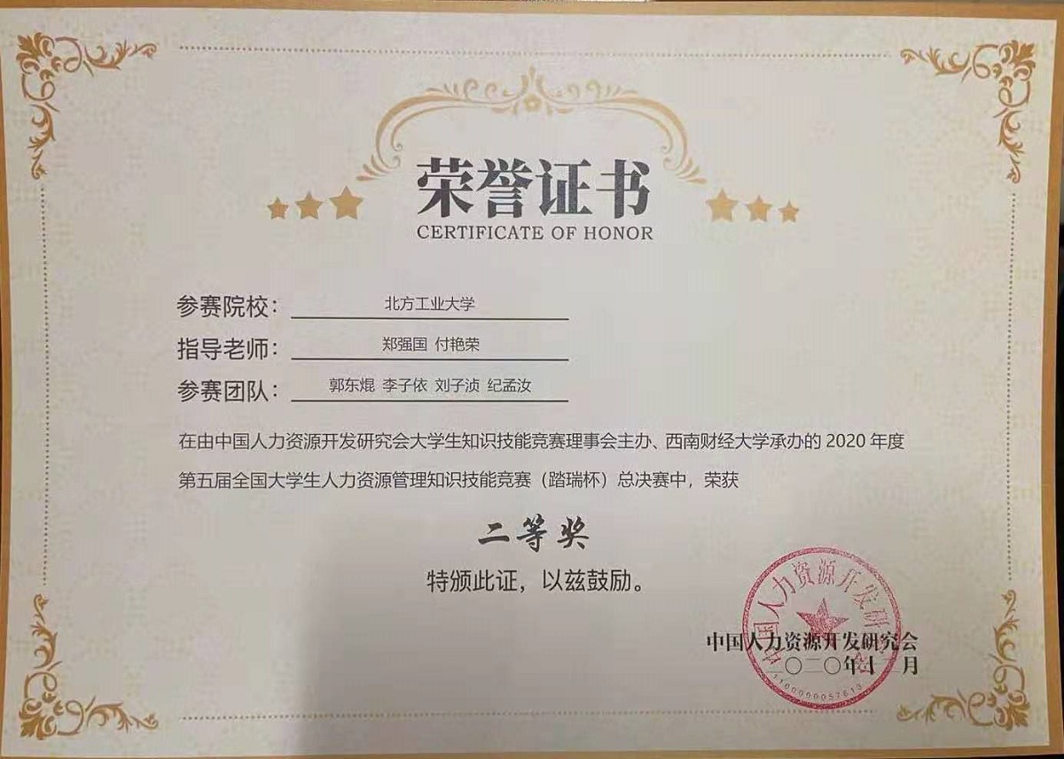 第五届全国老员工人力资源管理知识技能竞赛全程采用网络赛的形式进行。自9月1日启动以来,共有来自全国31个省市的328支参赛队伍报名参加。WilliamHill中文官方网站的两支代表队经过激烈角逐在第一大区赛中均获得了二等奖,指导老师是公司国家级一流专业建设点——工商管理专业从事人力资源管理研究的郑强国,魏秀丽,罗文豪和付艳荣老师。其中一支代表队从七大赛区的预选赛中被选拔出来进入全国总决赛。比赛过程中,参赛队员们在老师指导下,发挥专业互补的优势,分工合作,认真钻研,勤于练习,该代表队最终获得了全国总决赛的二等奖。