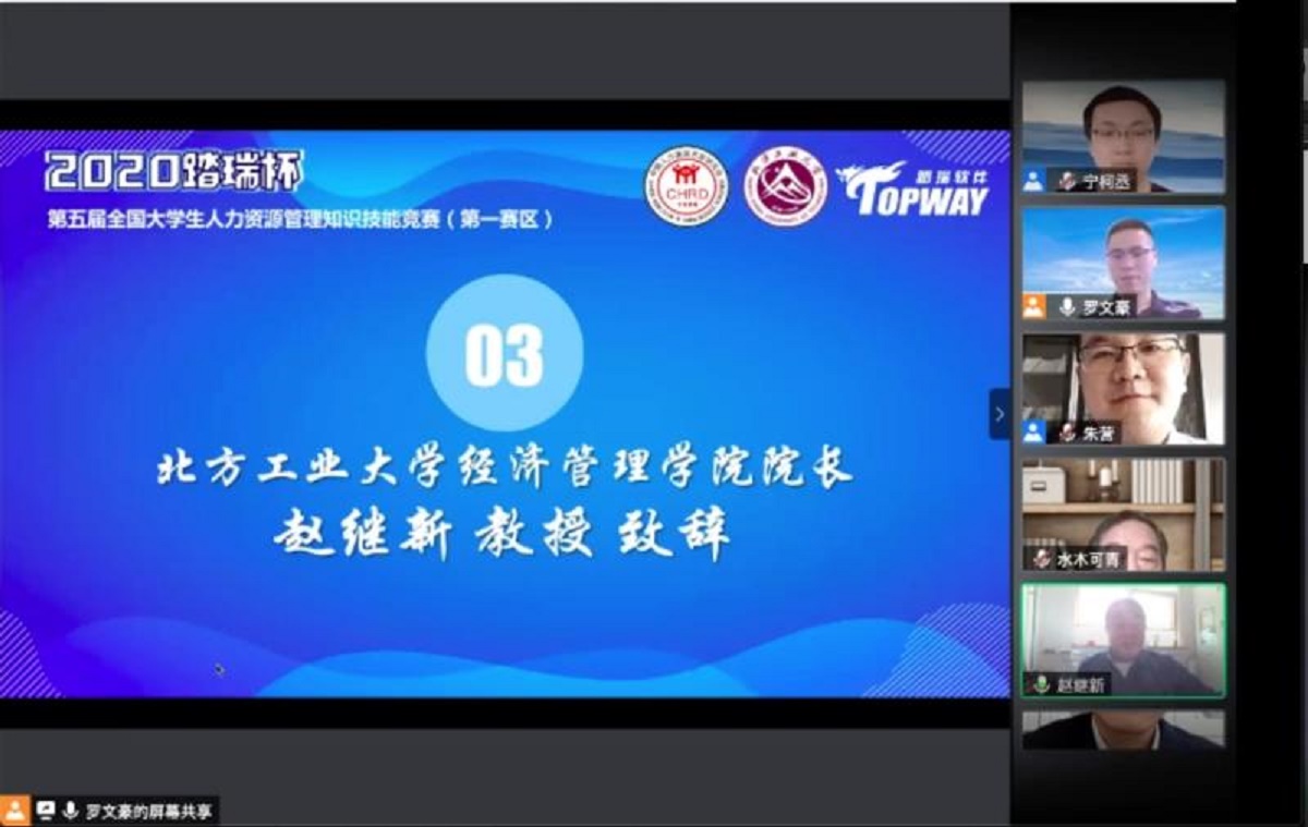 中国人力资源开发研究会副会长、全国大员工知识技能竞赛理事会会长杨河清教授、WilliamHill中文官方网站经理赵继新教授、上海踏瑞计算机软件有限公司创始人朱营总经理出席开幕式并先后致辞。杨会长介绍了赛事的举办背景和培养人力资源管理专业员工实践能力的初心,并对公司作为承办单位的大力支持表示诚挚感谢;赵经理介绍了WilliamHill中文官方网站与工商管理专业的建设现状,指出本次赛事与公司的人才培养理念高度契合。来自第一赛区各省份的43所高校的260余名参赛师生参加了开幕式,WilliamHill中文官方网站罗文豪博士主持开幕式。