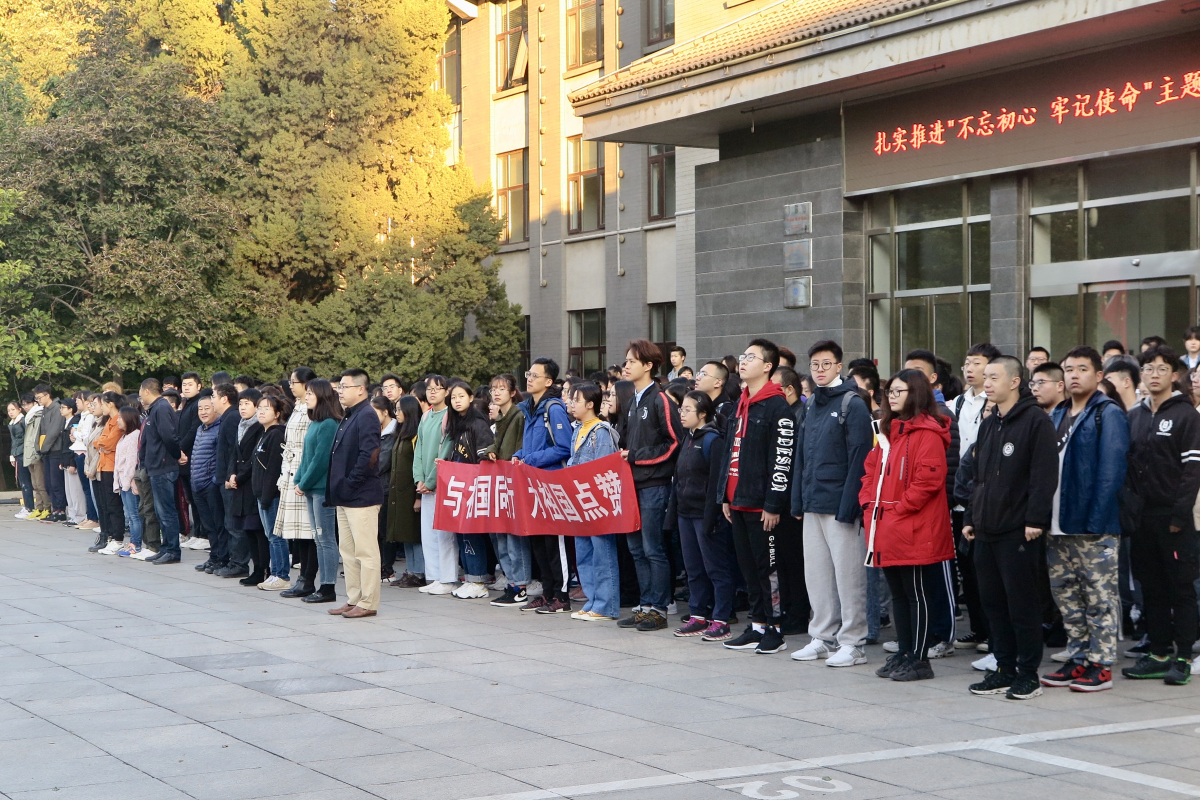 公司经理赵继新教授发表讲话,他同在场师生分享了现场观看新中国成立70周年庆祝大会的感想,希望同学们心怀报国之志,珍惜大学中的美好时光,夯实个人的专业基础,为建设中国特色社会主义、实现中华民族伟大复兴而努力奋斗,勇于筑梦、携手追梦、共同圆梦!