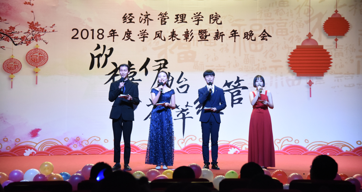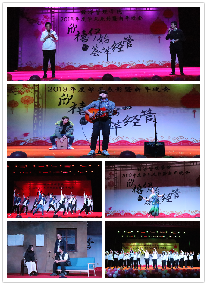 此次晚会围绕着同学们2018年的三个关键词——“坚持、转换、梦想”展开,大家通过自编自导自演的节目,回顾了2018年的过往,同时也对2019年充满了期许和展望。公司辅导员邓鑫、王昕宇以及励学楼管理员李海涛的献唱,更是将整场晚会推向了高潮,展现出了公司师生同乐贺新年的温馨画面。歌曲、舞蹈、小品等节目,也充分展现了经管人勤奋创新、阳光向上、敬业乐群、善于表达的气质品质。