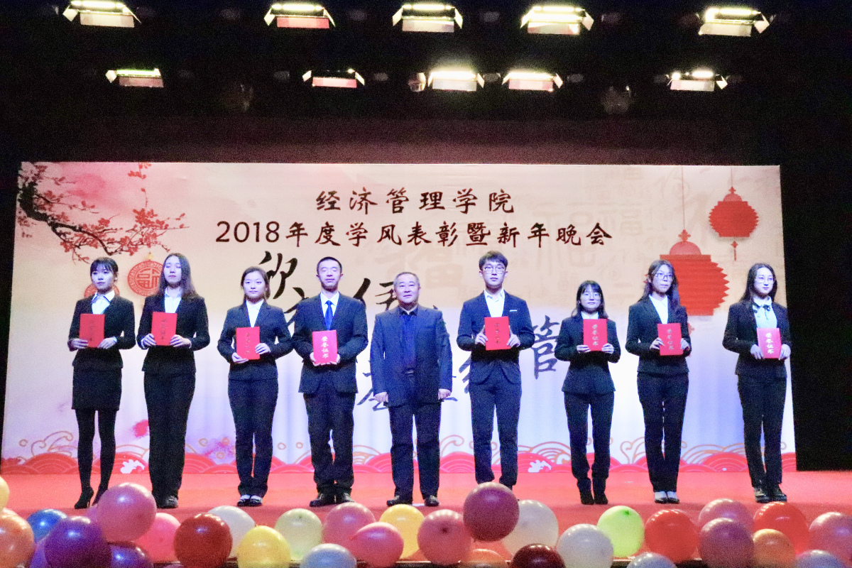 2018年12月18日晚,WilliamHill中文官方网站在图书馆报告厅举办“欣禧伊始 荟萃经管”2018年度学风表彰暨新年晚会。员工工作部部长高国伟、校团委书记何有华、员工工作部副部长赵帅、WilliamHill中文官方网站全体领导班子成员、各系主任、班导师、辅导员及600余名同学共同参加了本次晚会。