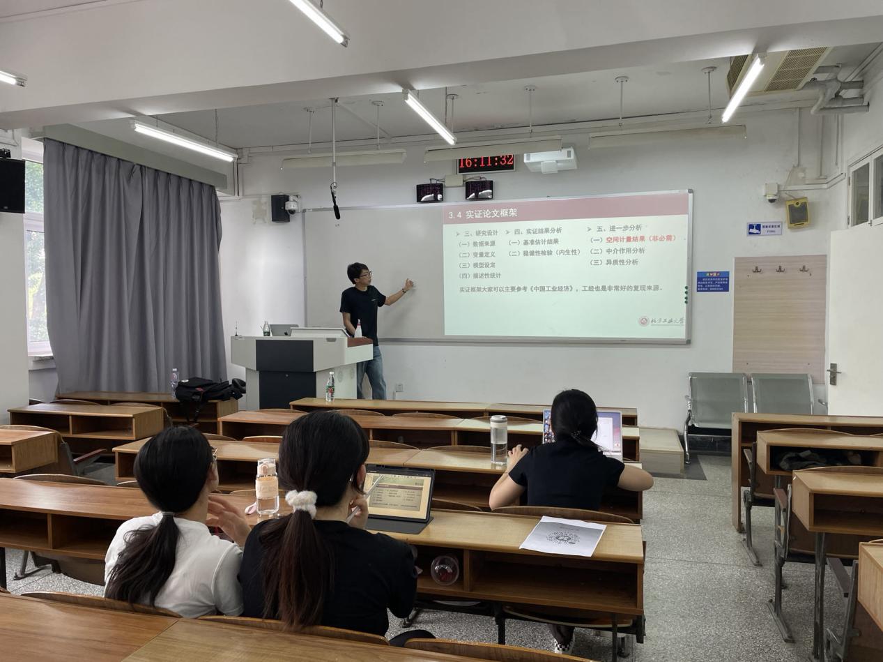 在本次讲座中,王星同学以其深厚的学术背景和丰富的申博经验,为在场的同学们带来了一场内容丰富、深入浅出的分享。他结合个人申请博士的亲身经历,详细阐述了各个公司申请博士的基本流程、注意事项以及常见误区。在实证论文写作方面,王星同学从选题、数据收集与处理、方法选择、论文框架构建等多个角度进行了深入讲解。这些实用的建议使同学们对实证论文的写作过程有了更清晰的认识,也提升了他们的写作能力。最后,王星同学结合自己已发表的论文,分享了论文撰写与投稿心得,鼓励大家提前规划时间并认真投入论文写作任务,同时也要积极投稿,不要存在畏难心理。