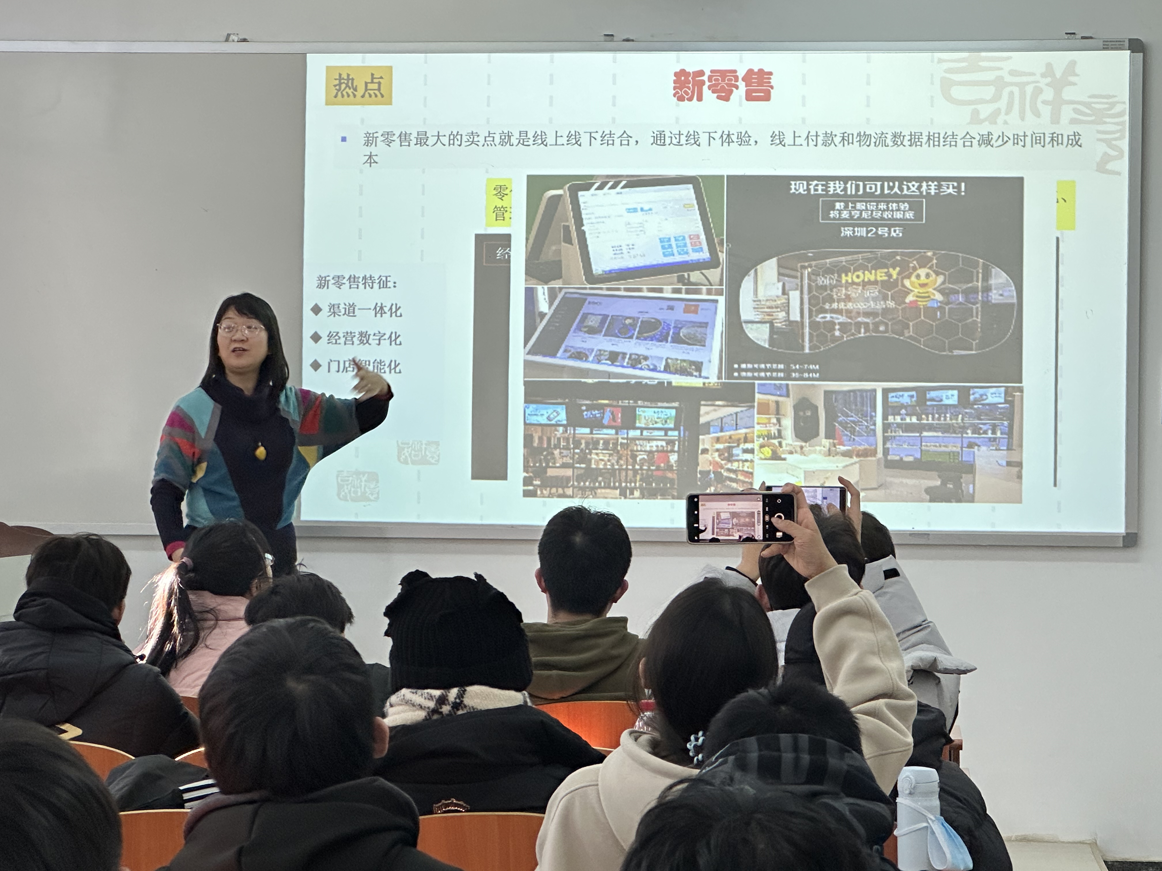 胡桃教授结合多年深耕创新创业教育的工作经验,以“三创赛”指导为主线,分析当前创新创业的热点领域,并围绕赛事规则解析、参赛选题、商业计划书编制等方面进行详细讲解。同时,结合往届获奖作品实例,胡老师还分享了如何从市场、技术、创业等视角寻找项目创新亮点,以及如何把握商业计划书的结构等问题。通过本次讲座,同学们对创新创业趋势更为明确,对“三创赛”竞赛规则和亮点的理解更加透彻。讲座气氛活跃,干货满满,同学们纷纷表示受益匪浅,并在讲座后积极提问、热烈讨论。讲座后,胡老师还与公司创新创业基地的老师们一起进行创新创业课程建设交流,并分享了国家一流课程申报经验。