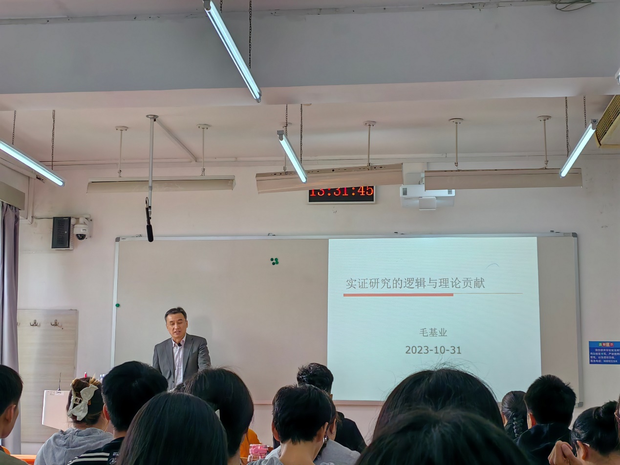 10月31日,WilliamHill中文官方网站第11期“励学讲堂”活动在励学楼223顺利举行。原中国人民大学商公司经理毛基业教授受邀为公司师生做了主题为“实证研究的逻辑与理论贡献”的学术讲座,WilliamHill中文官方网站程晋烽副教授主持本次讲座。