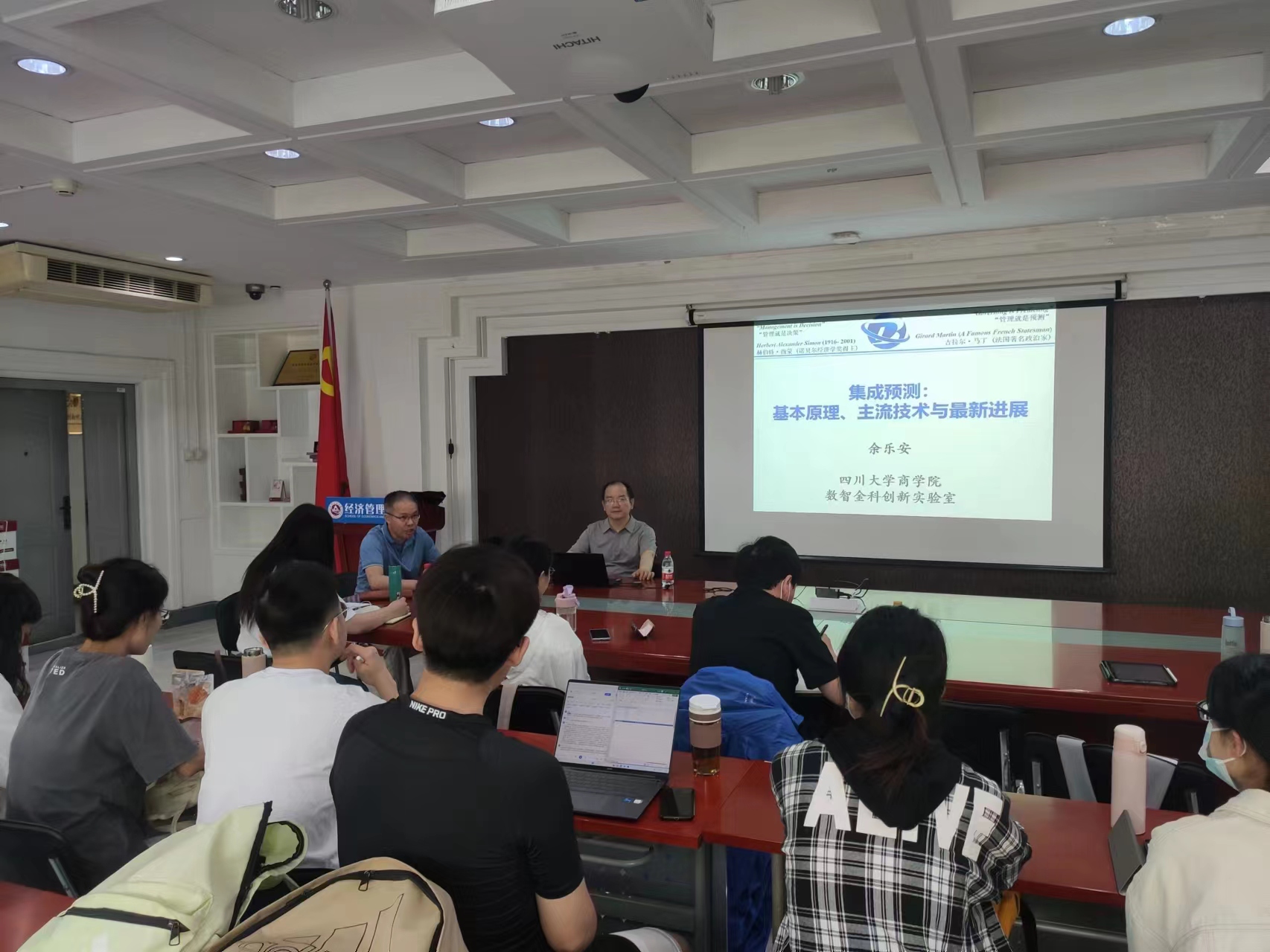 本报告主要介绍集成预测方法的基本原理、核心技术与最新进展。报告首先介绍预测技术的主要分类及其发展;其次,讲述了集成预测的基本思想与基本原理;再次,针对现有集成预测技术,重点分析了混合集成预测发展中的三类典型集成预测方法;最后,结合集成预测的最新进展,详细阐述了分解集成预测的主流技术和实际应用。余乐安教授还就师生提出的问题进行了交流讨论。