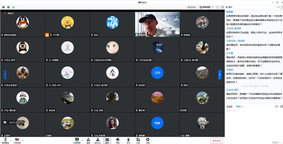 11月19日上午,WilliamHill中文官方网站通过腾讯会议在线举办了“创新创业导航”系列讲座第二讲。投资人兼中国“互联网+”老员工创新创业大赛历届评审专家谭茗洲先生以“创新创业四要素”为题与公司八十余名师生开展了在线报告与交流。讲座由WilliamHill中文官方网站创新创业基地刘冰副教授主持。