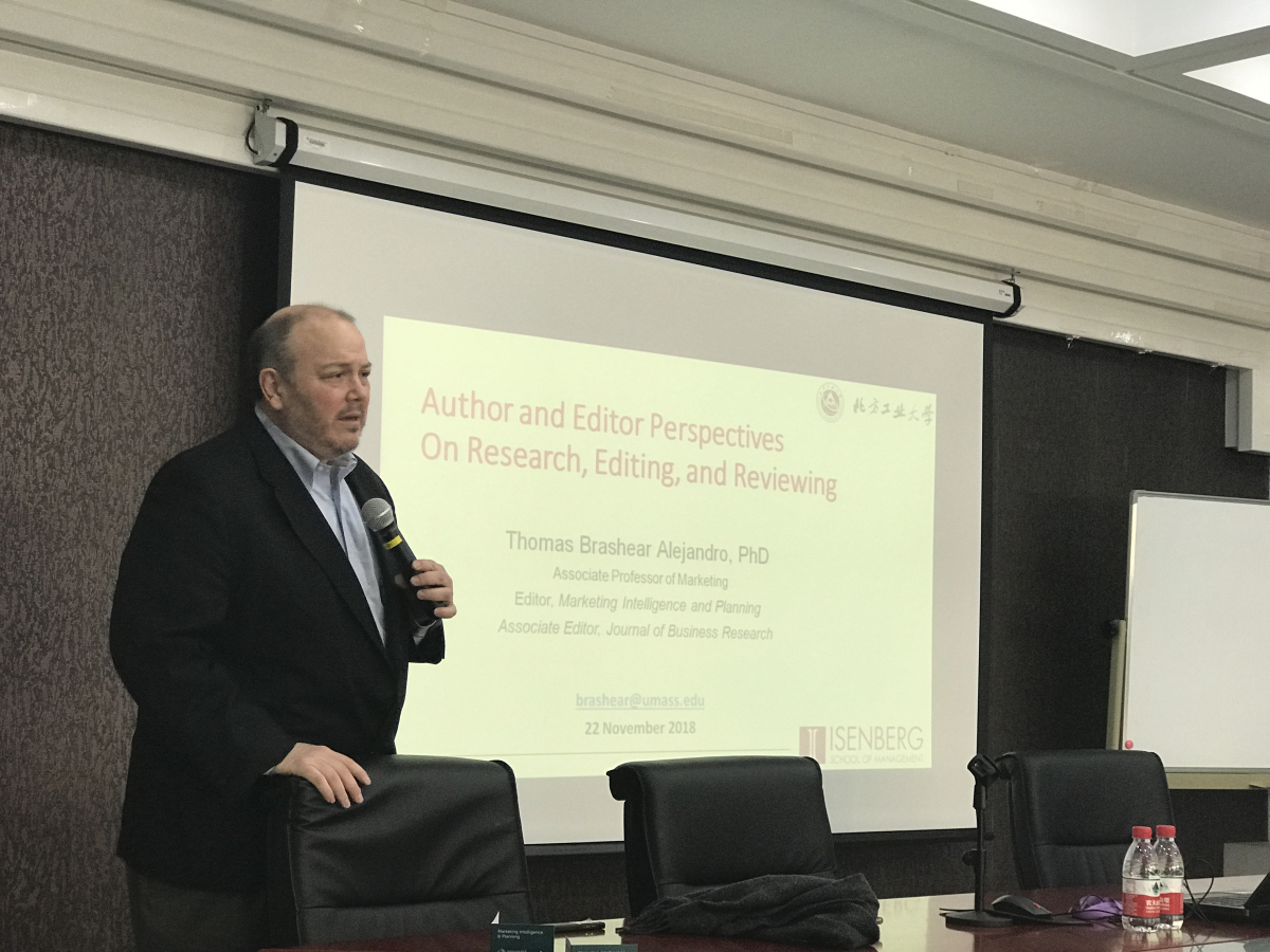 2018年11月22日下午,应WilliamHill中文官方网站邀请,Journal of Business Research(SSCI期刊)副主编、Marketing Intelligence & Planning(SSCI期刊)主编托马斯•布拉希尔(Thomas Brashear)教授在励学楼301会议室为公司师生作了题为《研究、写作与评审:作者和主编的视角》的学术报告。WilliamHill中文官方网站部分教师及研究生代表参加了此次报告会,报告会由李晨光博士主持。