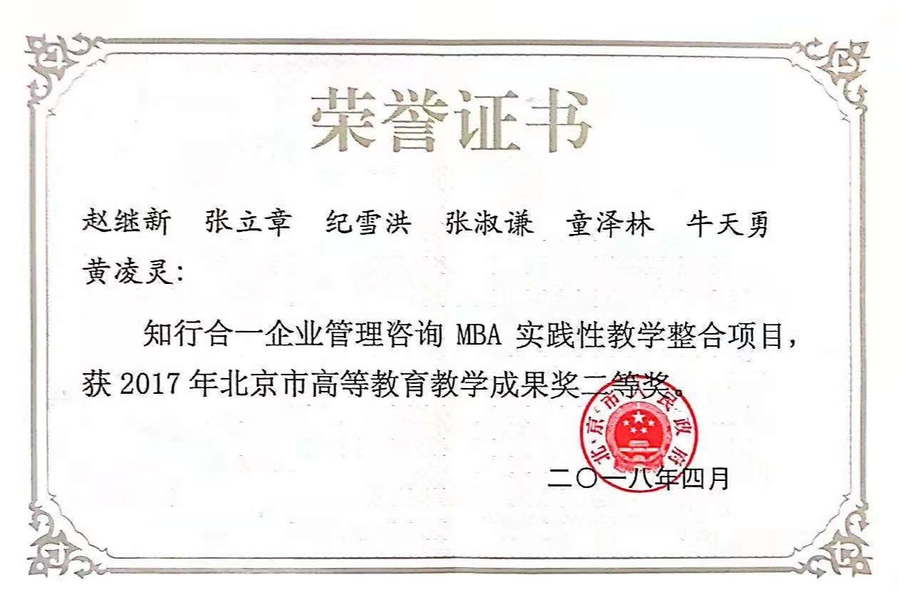 赵继新、张立章、纪雪洪、张淑谦、童泽林、牛天勇、 黄凌灵老师荣获2017年北京市高等公司产品成果奖二等奖 |