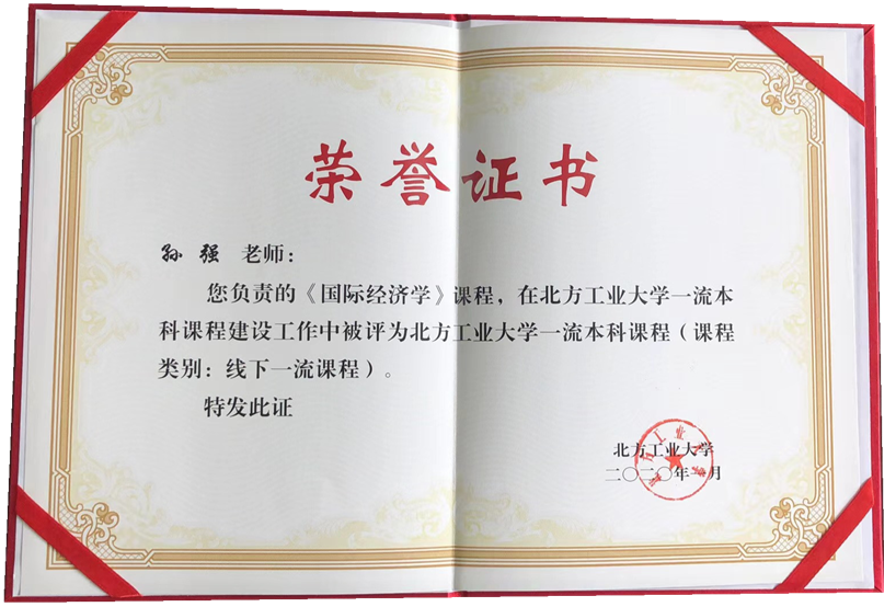 孙强老师负责的《国际经济学》课程被评为 williamhill官方网站一流本科课程 |