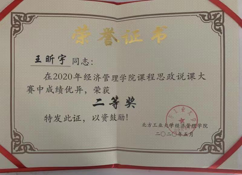 王昕宇老师在2020年WilliamHill中文官方网站课程思政说课大赛中 荣获二等奖 |
