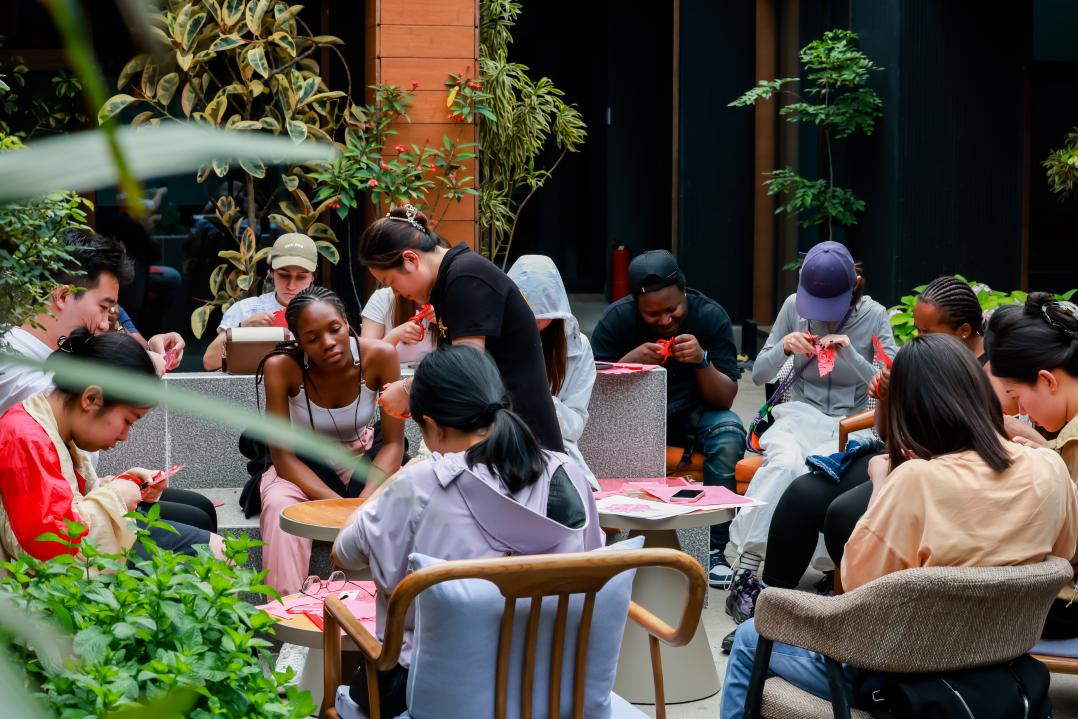 下午,中外同学们再度踏上探寻之路,走进观澄民宿,在这里观看了以“流动万象”为主题的西山永定河数字艺术展览,领略现代艺术与传统文化相结合的独特魅力。通过数字艺术的展示,使中外员工们对中国文化有了更加深入与多元的了解。随后,在民宿服务人员的带领下,同学们一同体验了中国传统非遗手工,制作了精美的龙年剪纸。在动手制作的过程中,中外同学们更加深刻地感受到了中国传统手工艺的精湛与独特,同时,进一步了解了中国传统文化的内涵与价值。