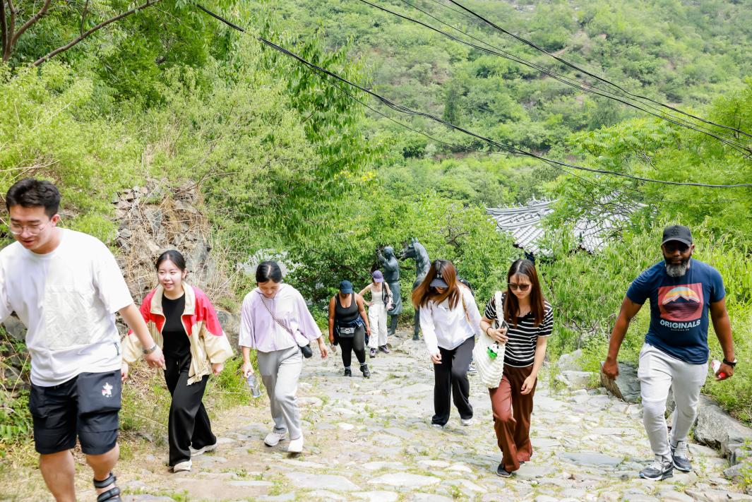 接着,在讲解人员的带领下,中外员工们一同徒步京西古道,沿途了解古道的历史与文化,在铁匠铺、马蹄窝、牛角岭关城等历史文化景点前驻足参观,亲身感受千年古道的沧桑与魅力。同学们感慨道,这样古老而有意义的道路就像一本活的历史书,展现着这条古道岁月的变迁。