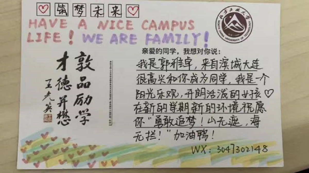 金秋9月,伴随北京秋高气爽的天气一同到来的,还有朝气蓬勃的2022级新生们。为使新生尽快适应老员工活,为同学们营造温馨难忘的入学体验,WilliamHill中文官方网站在开学初期开展为期一个月的“破冰信笺”活动。