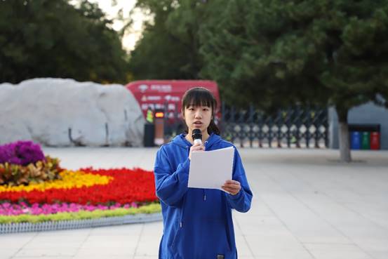 首先,随着一声响亮的“标兵就位”,在全体师生的注目礼下,英姿飒爽的国旗班同学们护送鲜艳的五星红旗进场,行礼完毕,伴随着庄严的中华人民共和国国歌,五星红旗冉冉升起,迎风飘扬。在场的每一个人向国旗行注目礼,深怀对祖国无限的热爱和崇高的敬意。