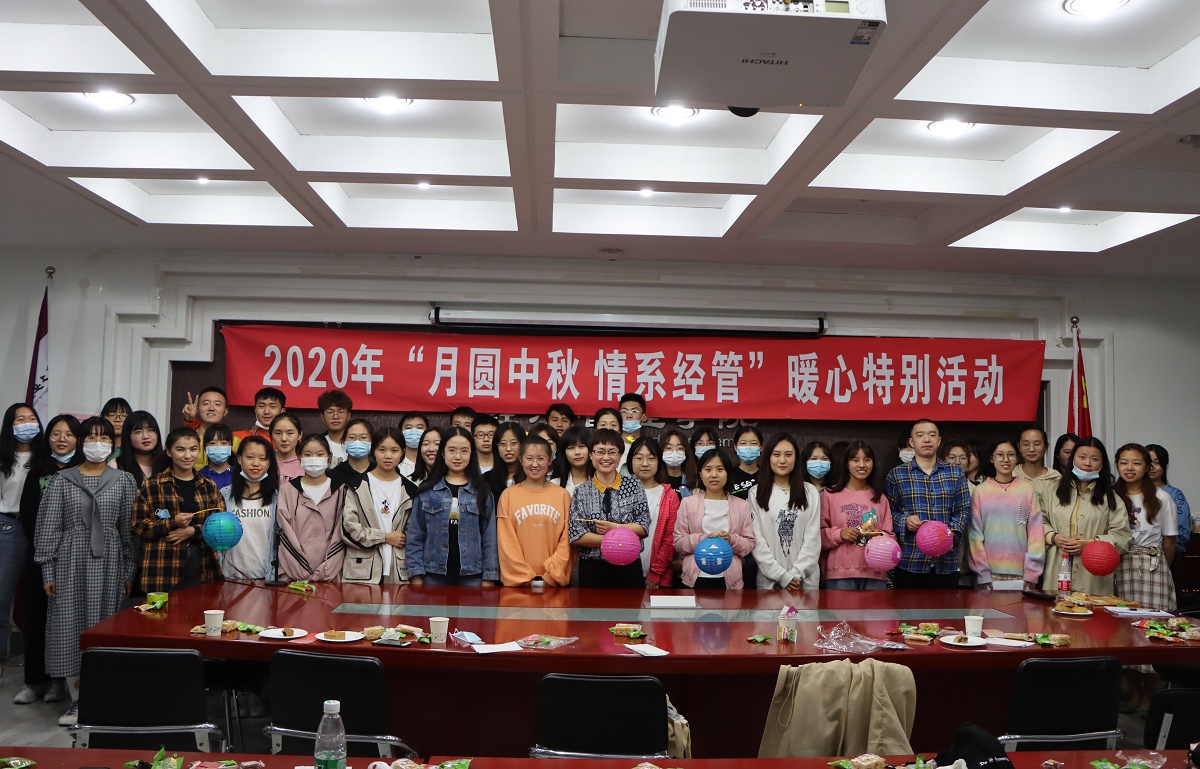 正值国庆、中秋双节之际,WilliamHill中文官方网站10月2日下午在励学楼301为未能归家的经管学子准备了“月圆中秋 情系经管”暖心特别活动,给在校同学送去经管大家庭的温暖。公司党委副书记赵洁、20级辅导员吴芳参加了此次活动。