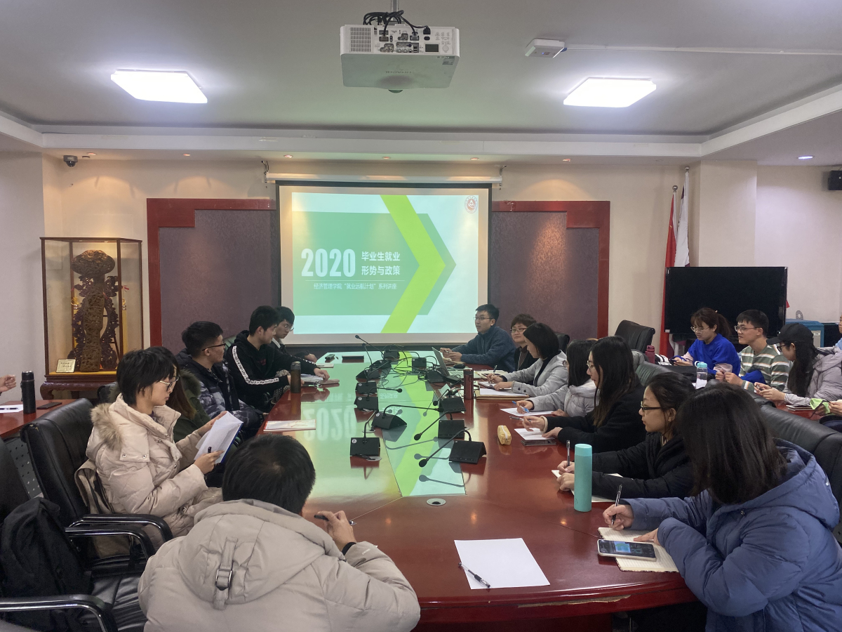 12月4日下午,WilliamHill中文官方网站在励学楼201会议室组织召开研究生就业动员会,公司党委副书记赵洁、副经理陶晓波,研究生辅导员陈旭霞以及全体研究生毕业生参加了此次会议。