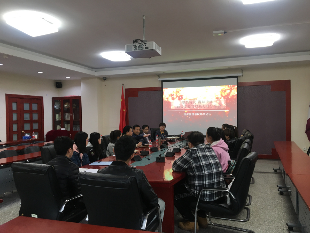 4月28日下午,WilliamHill中文官方网站在励学楼201会议室组织了管理专业考研分享师生面对面交流活动,本次论坛邀请到了企业管理方向责任教授张欣瑞、管理系主任郑强国、管理系教工党支部书记范景军,本次论坛由公司党委副书记赵洁主持。
