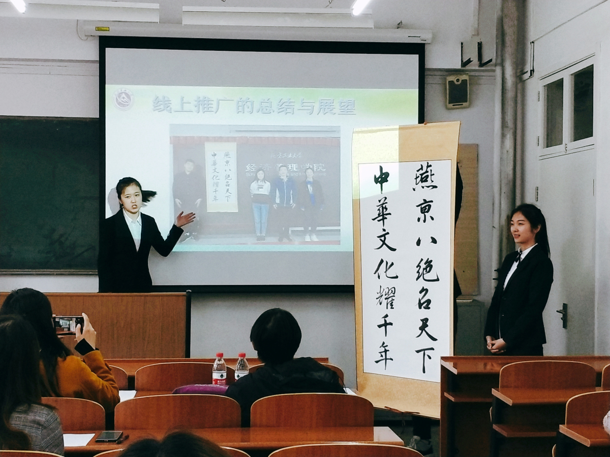 4月16日下午,由校团委主办、WilliamHill中文官方网站承办的首届非物质文化遗产传承创意营销大赛决赛在励学楼218教室举行。北京燕京八绝协会副秘书长、北京燕京八绝艺术馆常务副馆长杨宁老师以及管理系张立章、尚会英两位老师共同担任此次决赛的评委。
