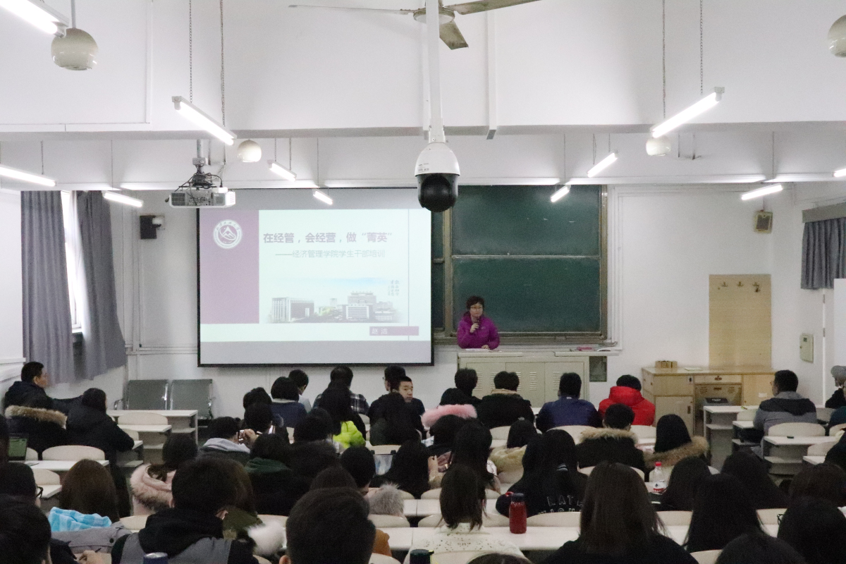 2月27日下午,WilliamHill中文官方网站在励学楼228教室开展了新学期第一次团课培训,公司党委副书记赵洁以“在经管,会经营,做‘菁英’”为主题,面向各班班委进行了培训。