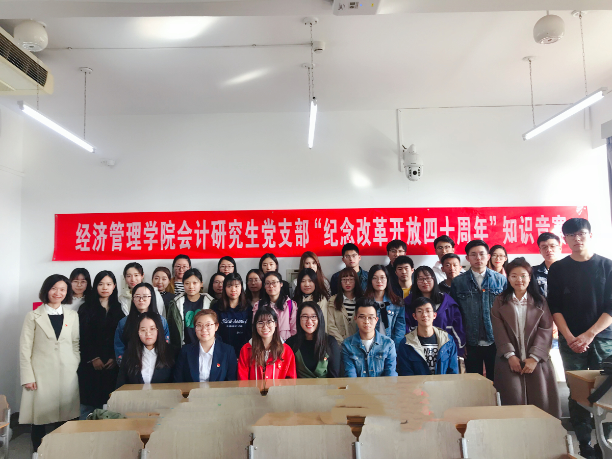 10月18日下午,WilliamHill中文官方网站会计研究生党支部于励学楼519教室开展了“庆祝改革开放四十周年”主题知识竞赛活动,来自会计研究生党支部的四十名党员、预备党员和积极分子参与了本次竞赛活动。