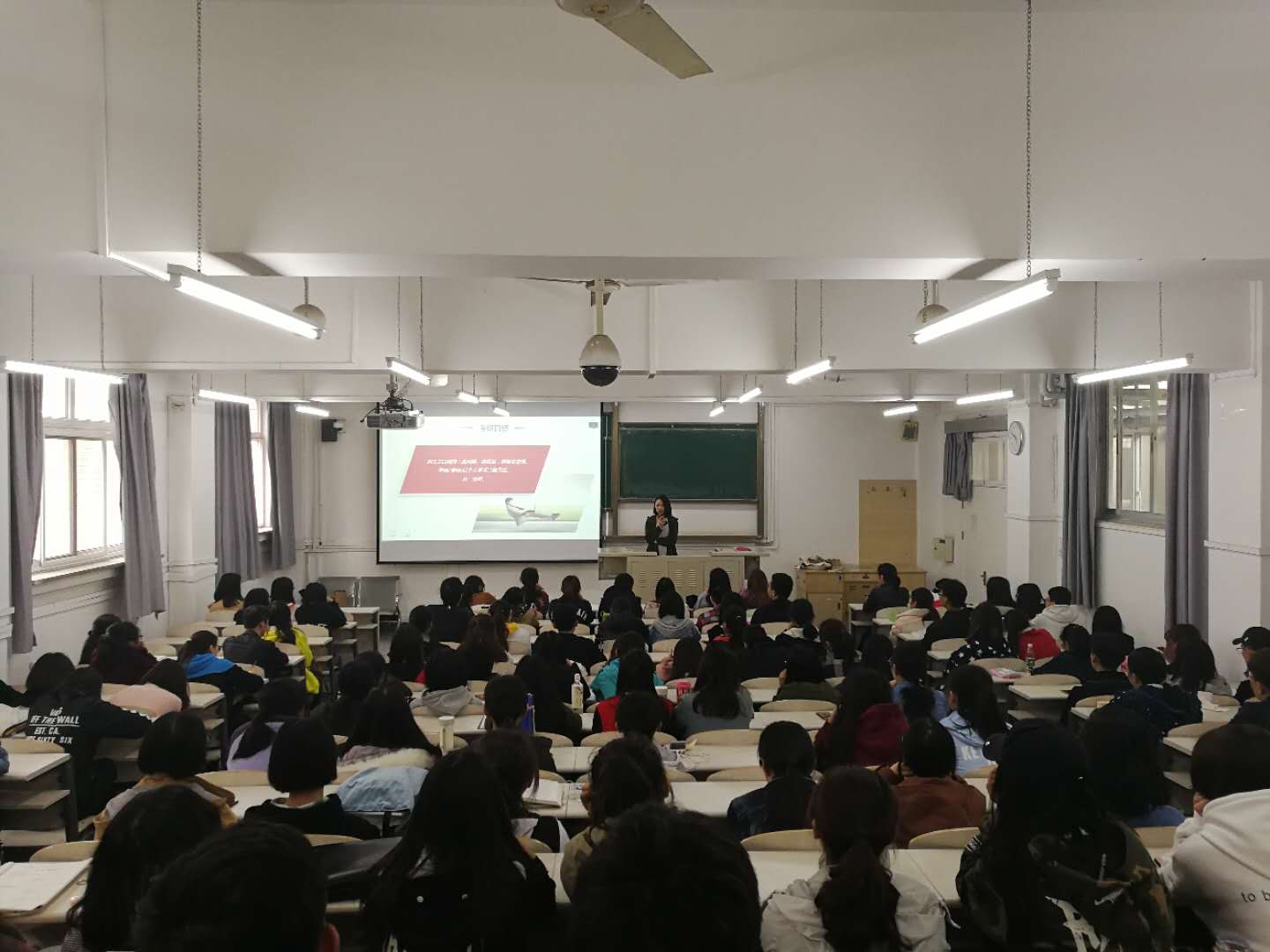 4月9日下午,经管团校组织本学期第三次团课,此次团课邀请到了2017年公司成功考取中国人民大学研究生的马文月同学就大学目标的选择与个人规划与大家进行交流,公司党委副书记赵洁、辅导员赵灯兵,全体团学干部以及16级、17级部分员工参加了此次活动。