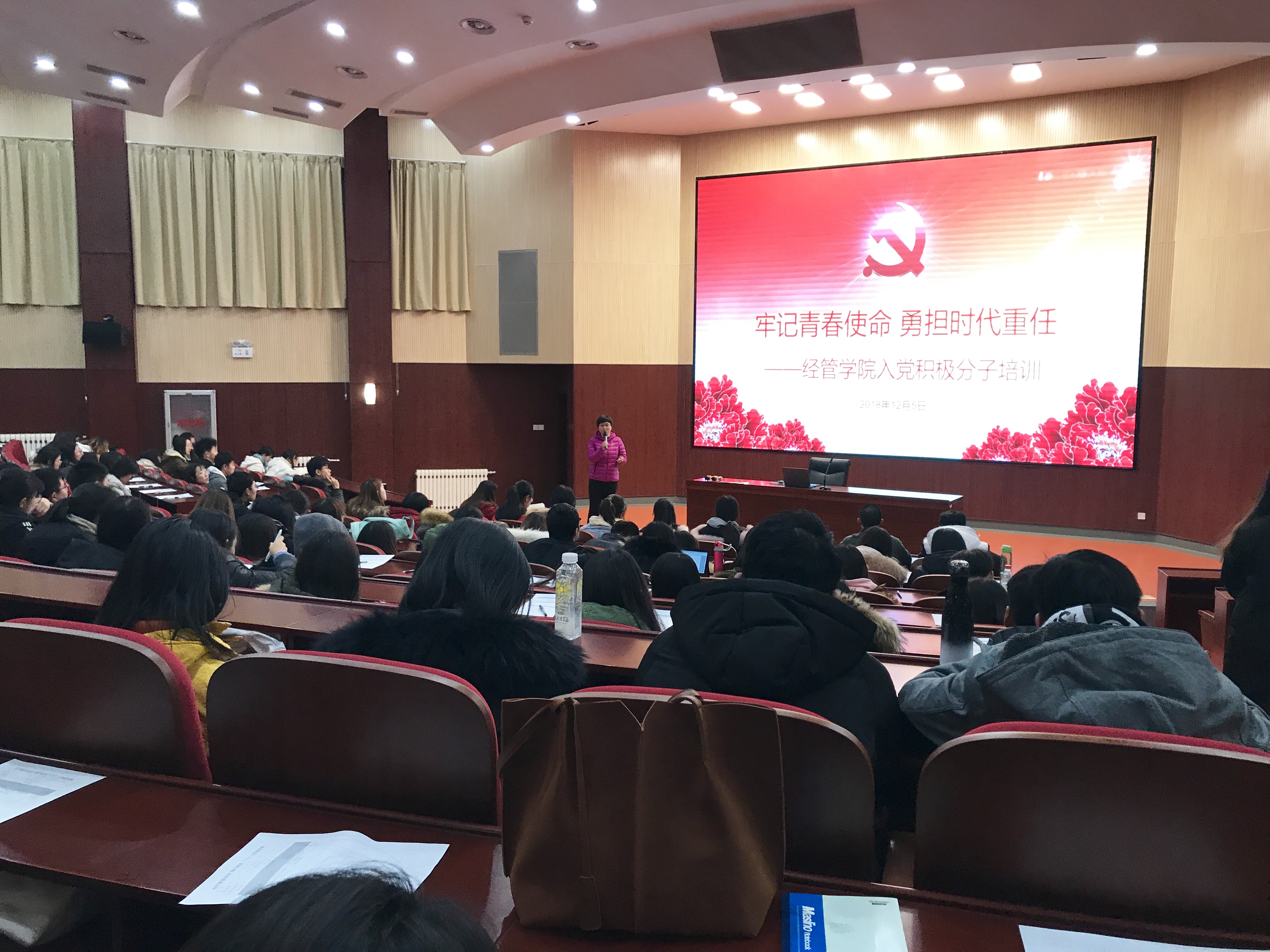 2018年12月5日下午,WilliamHill中文官方网站在文化会堂组织召开了本学期入党积极分子培训会暨经管团校第六课,本学期推选出的积极分子以及团学骨干近200名同学参加了此次培训,公司党委副书记赵洁老师担任此次培训会的主讲人。