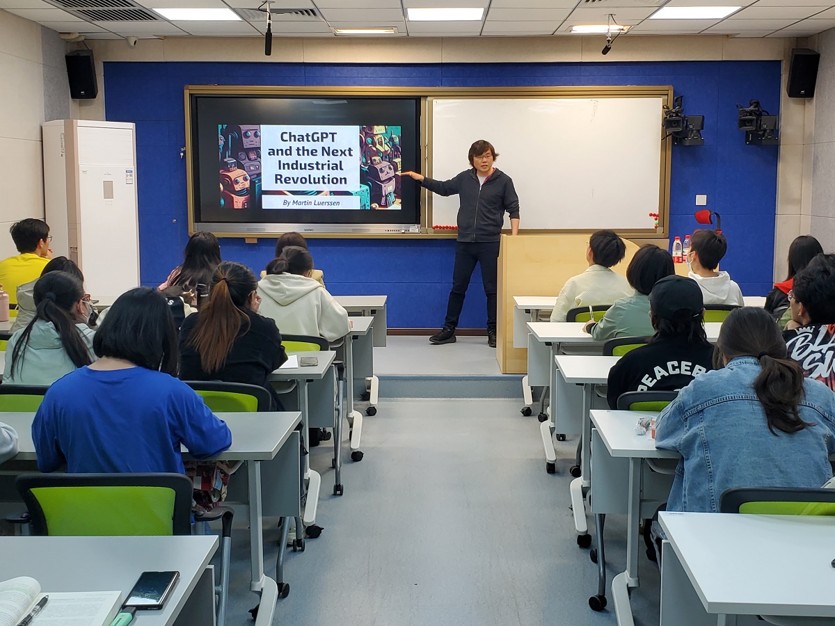 柯罗马老师从ChatGPT、Midjourney等近期热议话题入手,生动形象地对老员工创业的机会、挑战等内容进行了解读,并提出创业趋势的三方面转变:创业方向从互联网转向硬科技;创业主体从草根创业转向高校创新;创业模式从员工单干转向师生共创,给同学们启发了一些新思路。讲座结束后,柯罗马老师与同学们展开了关于创业方向、创业团队建设等多方面的交流。同学们提问踊跃,柯老师一一进行解答,也提出了很多有效建议。活动结束后,很多同学表示意犹未尽,并留下继续咨询。